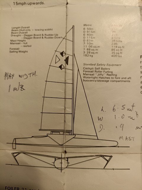 The 'office@ayrs.org' has just received an email from a Frenchman who has an opportunity to re-build a Foiler 21 sailing boat that he says is in rather poor condition. He has a copy of the original sales flyer for the boat (extracts below) and would appreciate any further information about it, or to make contact with anyone who has sailed this type of boat, or maybe even owns one today.